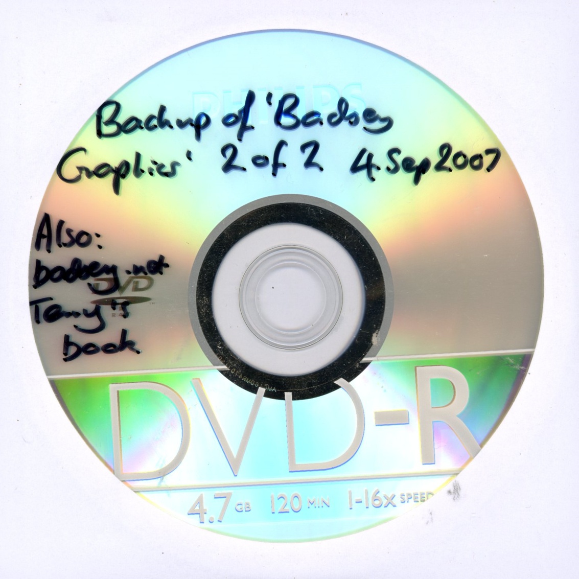 DVD containing backup of Badsey Graphics, 2 of 2; also badsey.net, Terry's book.
