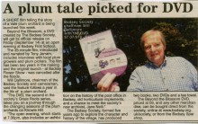 Newspaper article about the launch of The Badsey Society's latest DVD, Beyond the Blossom, about a plum orchard; to be launched at an open evening at Badsey First School on Friday 14th September. The 25-minute film, introduced and narrated by Tony Jerram, includes interviews with local plum growers and plum pickers, and filmed by Will Dallimore, chairman of The Badsey Society. Also a chance to meet the Society's new archivist, Jane Neill. Includes photograph of Will Dallimore with the DVD.