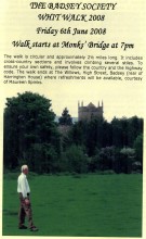 Programme for walk beginning at Monks' Bridge, walking via Badsey Silk Mill to Wickhamford, Badsey; followed by refreshments at The Willows, including Wit's End Ale - includes photos of the late Tony Jerram.