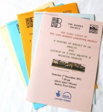 The final event of The Last Market Gardener Project: 5 x printed programmes of events for The Badsey Society evening to launch the new archive & museum website and to give the history of Badsey in a 100 objects held at Badsey First School on Saturday 1st December 2012 at 7.30p.m.
