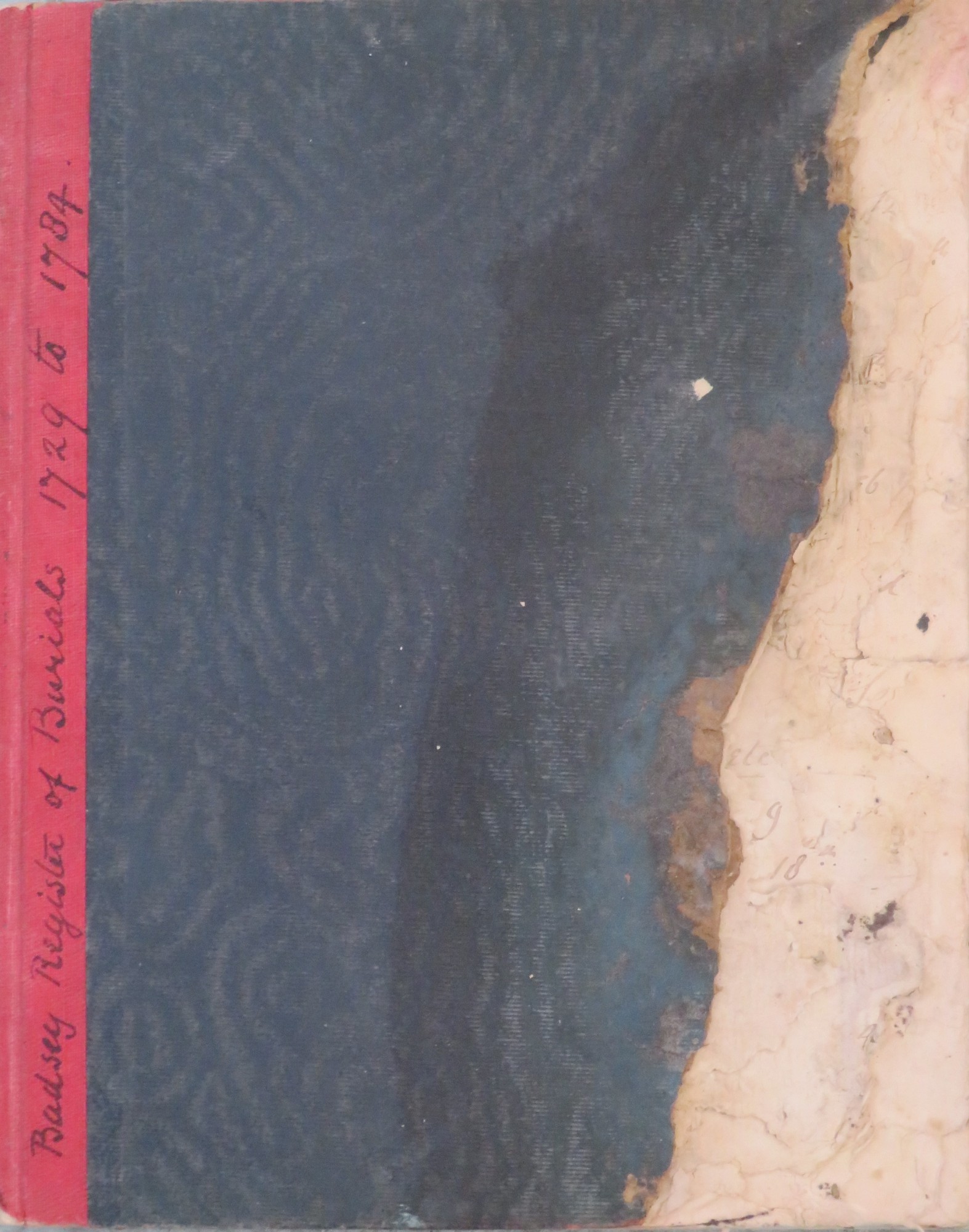 A transcription of the register of burials for Badsey, 1729-1784, by the Reverend W H Price. On the inside front cover it says: