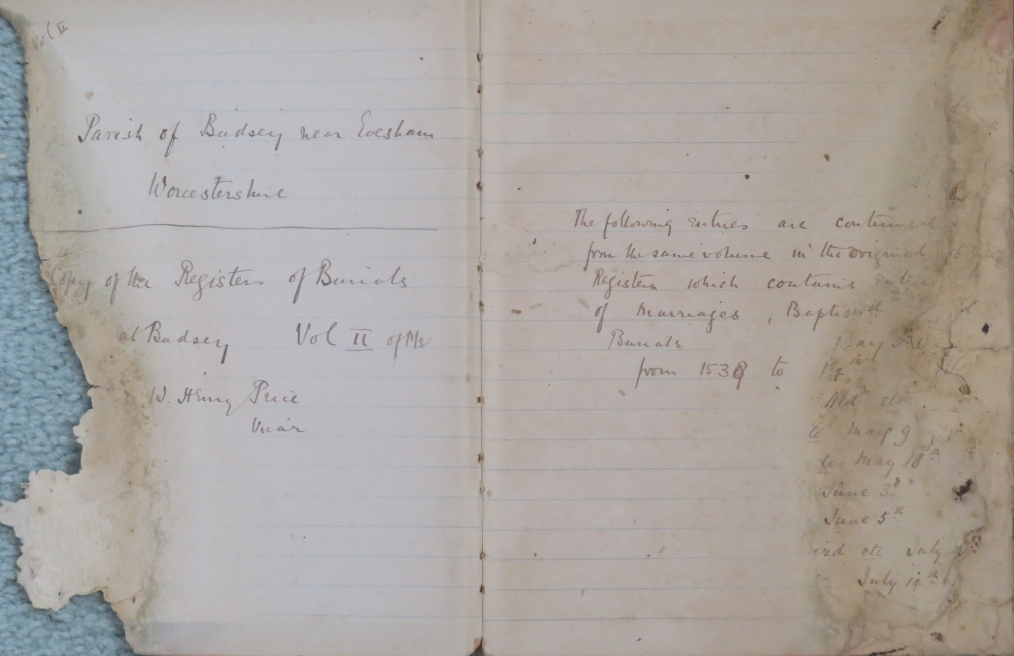 Copy of the Register of Burials at Badsey, Vol II of MS