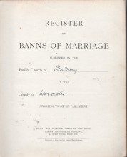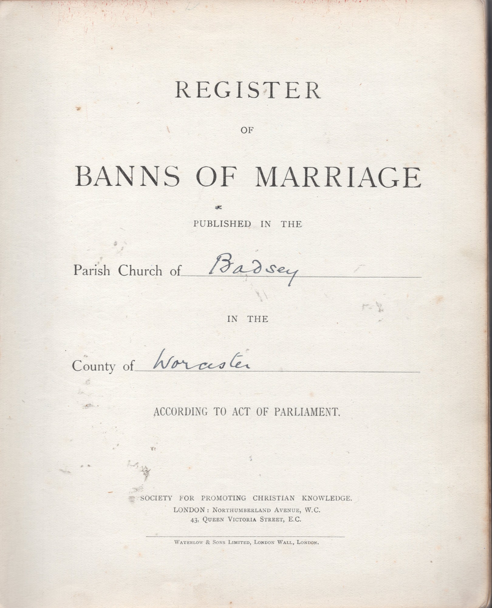The original Register of Banns of Marriage for Badsey, 1922-1961. The pre-printed register has space for 510 entries, though the Vicar of the time added in an extra entry, No 511, for December 1961.