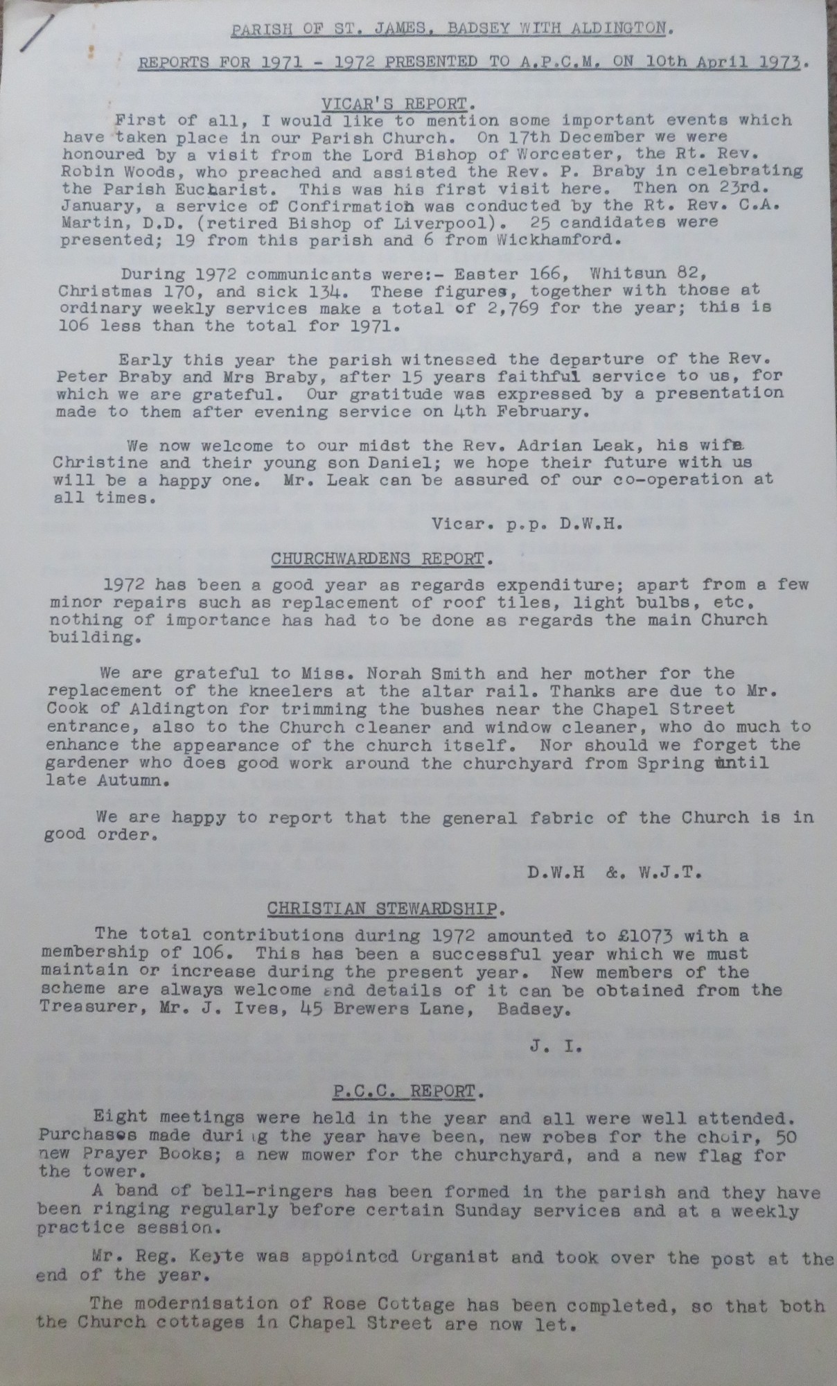 Annual reports of the proceedings of the Parochial Church Council, presented to the Annual Parish Church Meeting: