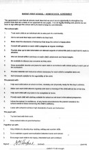 Department for Education and Employment (DfEE) leaflet "Home-School Agreements: What Every Parent Should Know" and accompanying letter (A) from the Headteacher of Badsey First School, Mr G T Hughes, dated 24th September 1999, and Badsey First School's Home-School Agreement (B).