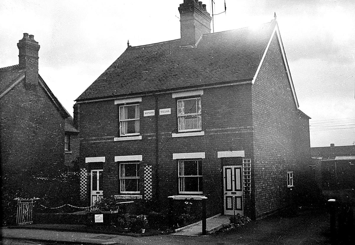 Description written on back of photo by photographer: Hopyard Villas, houses on the Birmingham Road at Badsey.