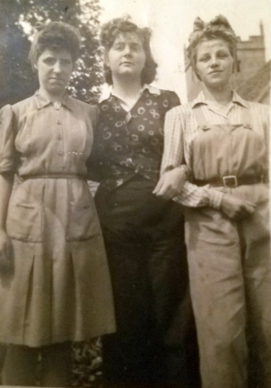 The first photo shows the girls with Wickhamford Church in the background; Violet Fletcher, the Forewoman, is in the centre.