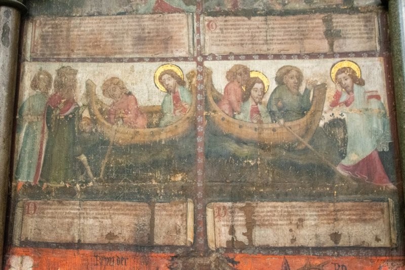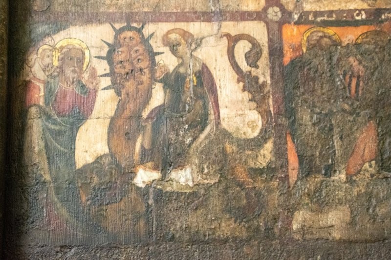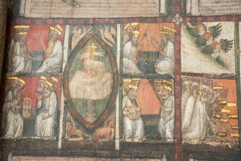 14th-century scenes from the Revelation of St John the Divine on one of the walls of the Chapter House.