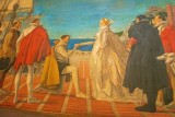The paintings on the walls depict various important events in British history.