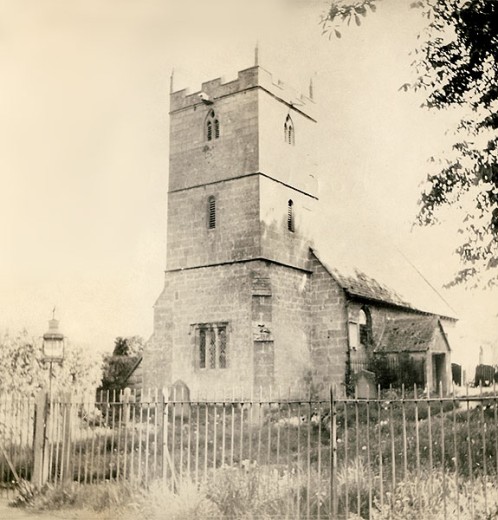 Wickhamford St John the Baptist church before the wall was built. The picture dates from the early twentieth century and belonged to Fred Mason. We are grateful to his daughter Val Harman who lent it to us.