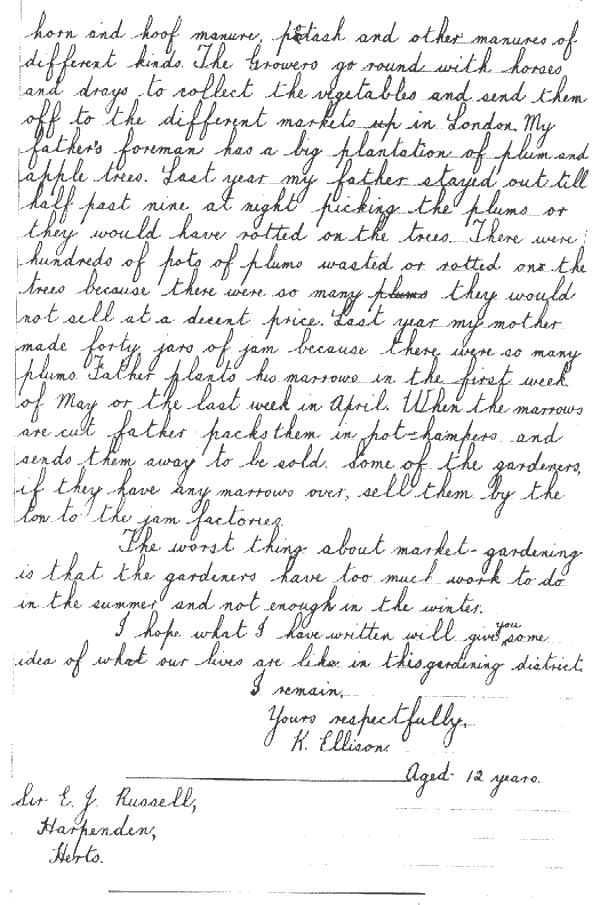 This is one of a series of letters by Badsey Council School children describing life in a market gardening community in 1933. Copyright © IACR-Rothamsted 2001.