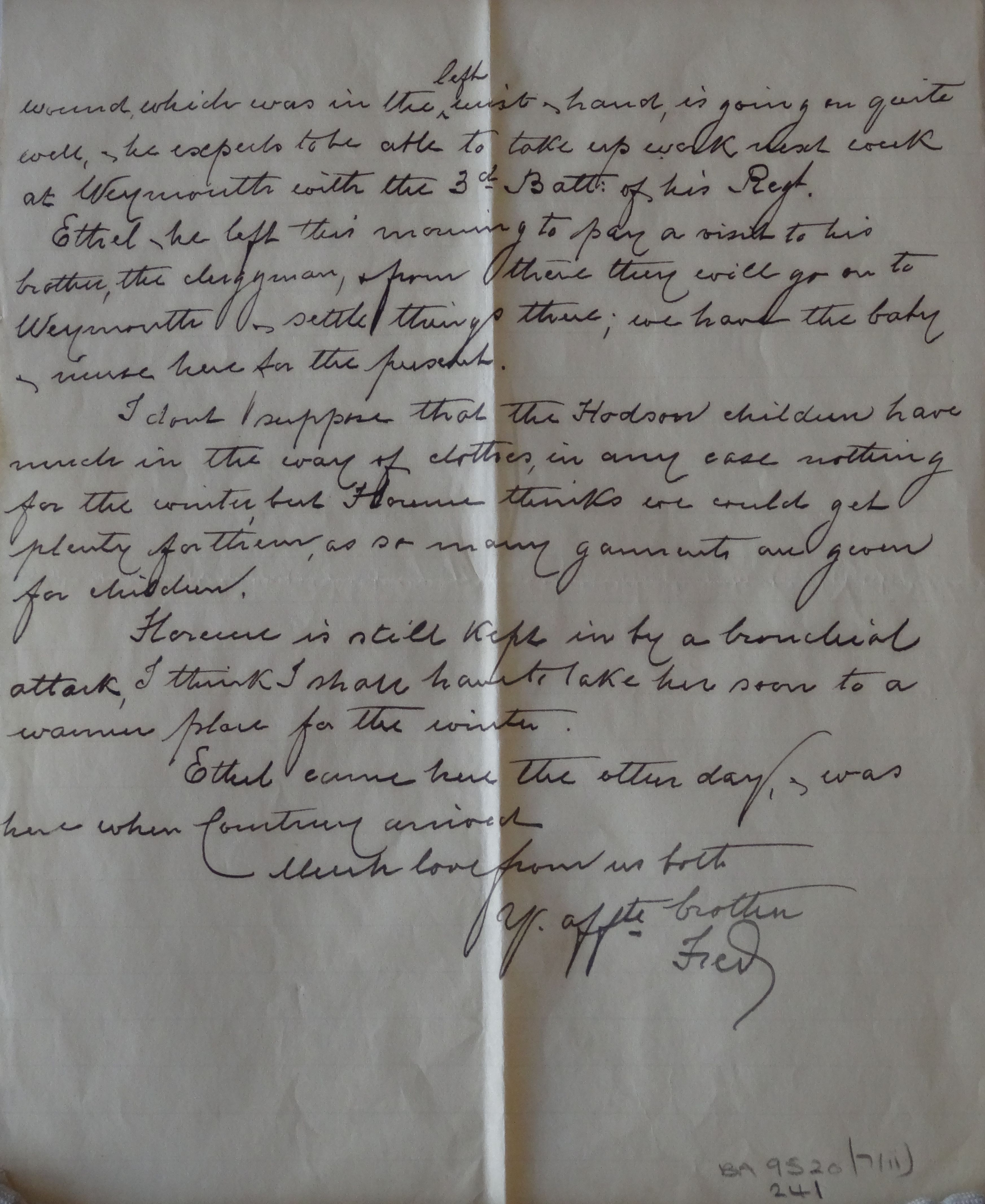 I doubt I suppose that the Hodson children have much in the way of clothes, in any case nothing for the winters, but Florence thinks we could get plenty for them, as so many garments are given for children.
