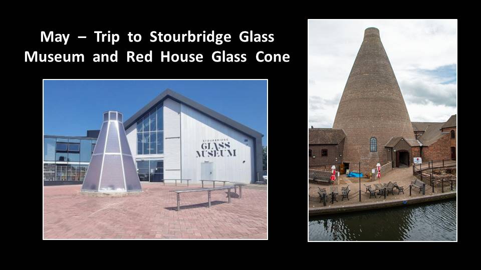 A visit to Stourbridge Glass Museum and Red House Glass Cone at the end of May was enjoyed by 28 members. We learned about the origins of glass making in Stourbridge, discovered the tools glass makers used, and explored the museum’s extensive glass collections, some dating back 400 years. Thanks to Shirley Tutton who organises all our trips.