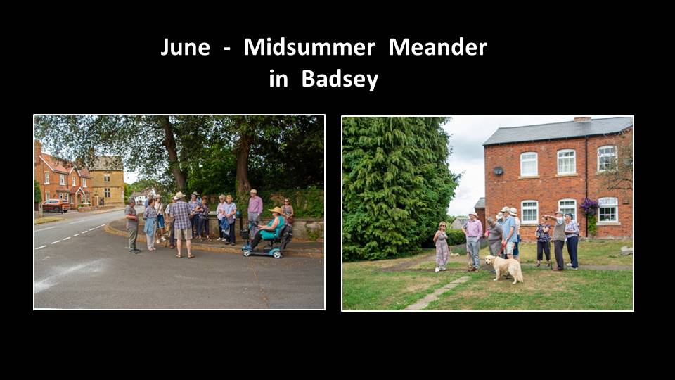 Later in the month, members enjoyed a gentle stroll around the village which began and ended at The Wheatsheaf. Fortunately, the searing heat of the previous few days had abated, so it was a much more comfortable temperature. Alan Tutton led the walk, pointing out the QR codes along the way, and explained about the sites of Badsey’s two mills.