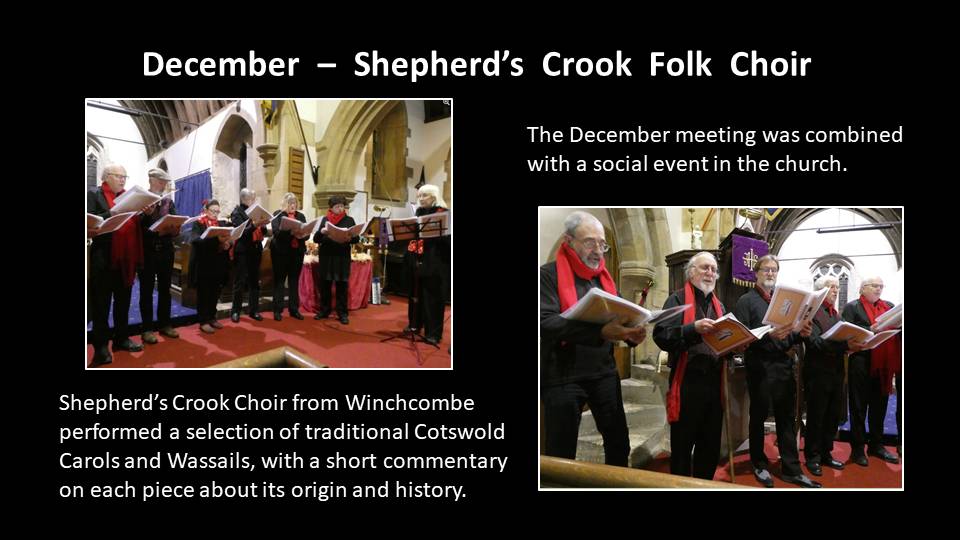 We had a welcome return visit from Shepherd’s Crook Folk Choir who came to sing for us in St James' Church. This followed immediately after the annual Christmas carols outside The Wheatsheaf, organised by the Parish Council. Members enjoyed tea/coffee and mince pies before the concert began at 8 pm.
