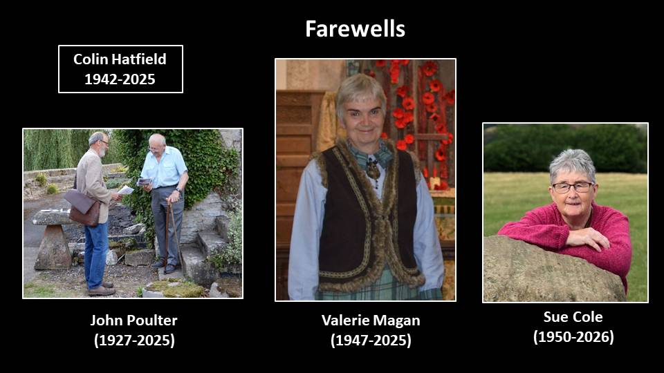 - Sue Cole (1950-2026) died on 7th January at Cavendish Park Care Home. Sue joined the Society in its foundation year and was a member until ill-health forced her to resign. Sue originally trained as a primary school teacher and, on moving to Badsey in 1988, did supply teaching at a number of schools in the area. She started a Beaver pack in Badsey and, for many years was a much-loved Brownie leader. Sue was a Churchwarden at Badsey for many years, and decided to train to be a reader in 2006. At her memorial service held at Badsey this lunchtime, where I know a number of you were present, the church was full of people wanting to show their appreciation for all that she has done for the village over the years.