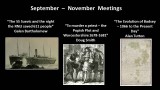 In September, Galen Bartholomew gave a fascinating talk about how the SS Suevic ran aground in a storm off the Lizard Point in Cornwall in March 1907. The RNLI rescued 456 people in appalling weather conditions. This is still the largest number of people rescued by the RNLI in a single operation. Another ship also ran aground on the same night and the RNLI saved a further 155 lives. Not a single life was lost in either rescue. Galen had a personal interest in the story as he found out only a few years ago that his great-grandmother and great-aunt were amongst those rescued from the Suevic.