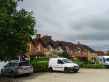 Ordnance No 144, heavy land, sloping west and north-west, a fair aspect for fruit and above frost level ground is not so good at farthest end from road. Fully planted with plum trees and a few apples on outsides: Ecklinvilles, Pershores, Victorias, Prolifics, damsons, Autumn Bono and Monarch, 3 good crops in last 4 years, about 20 years old. House brick (red and white) and tile, modern and good repair. 1st floor: 2 small bedrooms and 3 large bedrooms, water closet, bath and hot and cold. Ground floor: porch, entrance hall tiled, 3 sitting-rooms, kitchen, scullery and pantry all very small; paved yard with coals and wash-house. Tap water laid on; tennis lawn, conservatory. Cottage and buildings see 957.